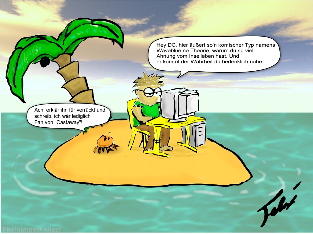PowerProgrammer hat Folgendes geschrieben: Von links nach rechts: Fanart zu Stranded (II) von Pdd und Waveblue, Fanart zu Startrade von The_Nici und Watanien II Fanart von darth_gamer Hast du da nicht zufällig jemanden vergessen? Ich zähle 4 Bilder :O Edit: Ubs, ok, jetzt versteh ichs^^ Sorry |