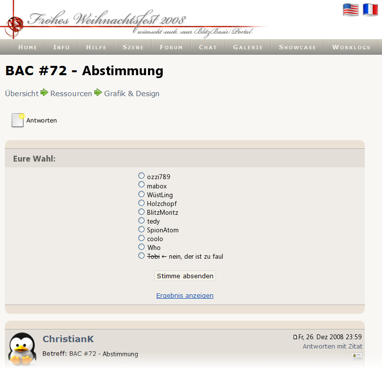 Ich hab für BlitzMoritz gestimmt, ich finde die Posts genial :D