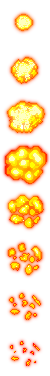 - Die Explosionen sind gar keine Explosionen, weil sie ja nur einen Frame lang angezeigt werden. Tipp zum Explosionen machen: Pixel die Explosionen (so ab 6 Frames (verschiedenen Bildern) sieht eine Explosion schon ganz gut aus). Wenn du die Explosionen gepixelt hast, kannst du sie in ein Grafikprogram laden, und dort mit Gaussschem Weichzeichner sowie Lighblend etc. bearbeiten. Das Ergebnis: