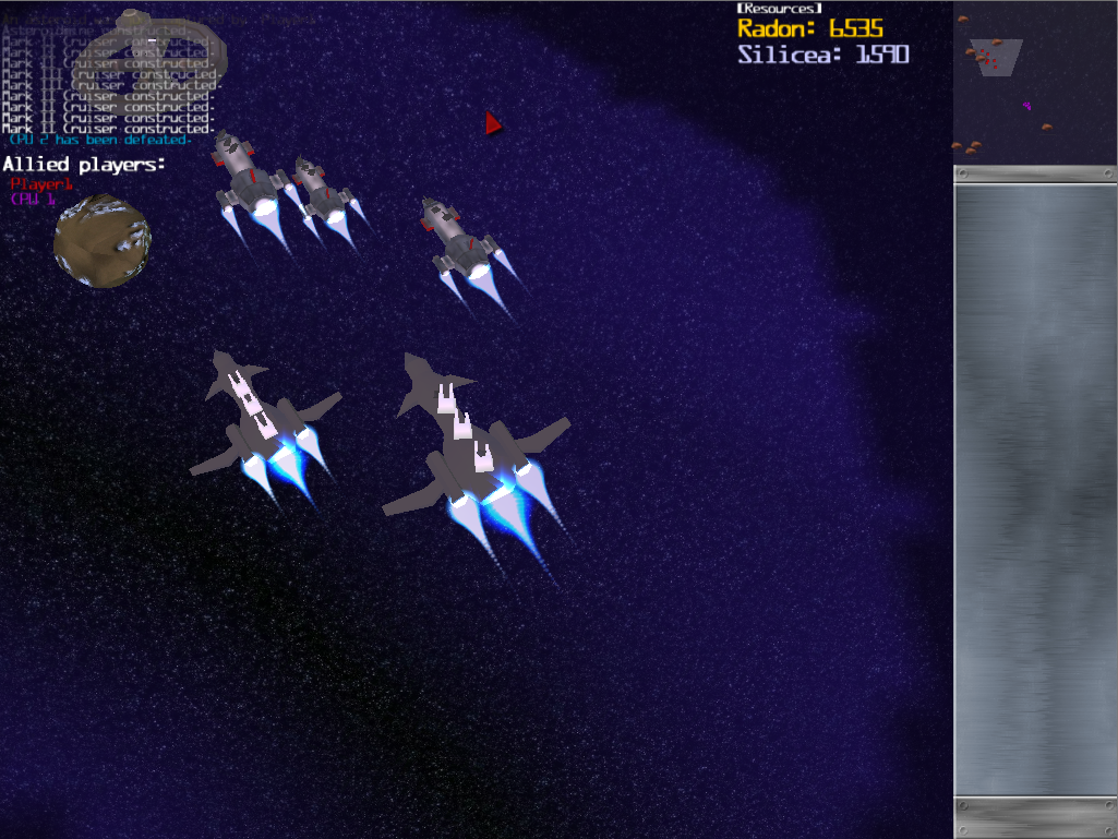 Neu eingebaut wurde das Partikelsystem, welches sich als wahrer Performancekiller herausgestellt hat, obwohl Singlesurface, es gibt nun zwei Resourcensorten, welche da Radon und Silizium wären, und es wurden ein paar kleinere Sachen (Texturen, Modelle, ...) überarbeitet. Verschiedene Resourcenarten werden durch unterschiedliche Texturen auf den Asteroiden dargestellt, wobei Radon gelblich ist, und Silizium hellblau.